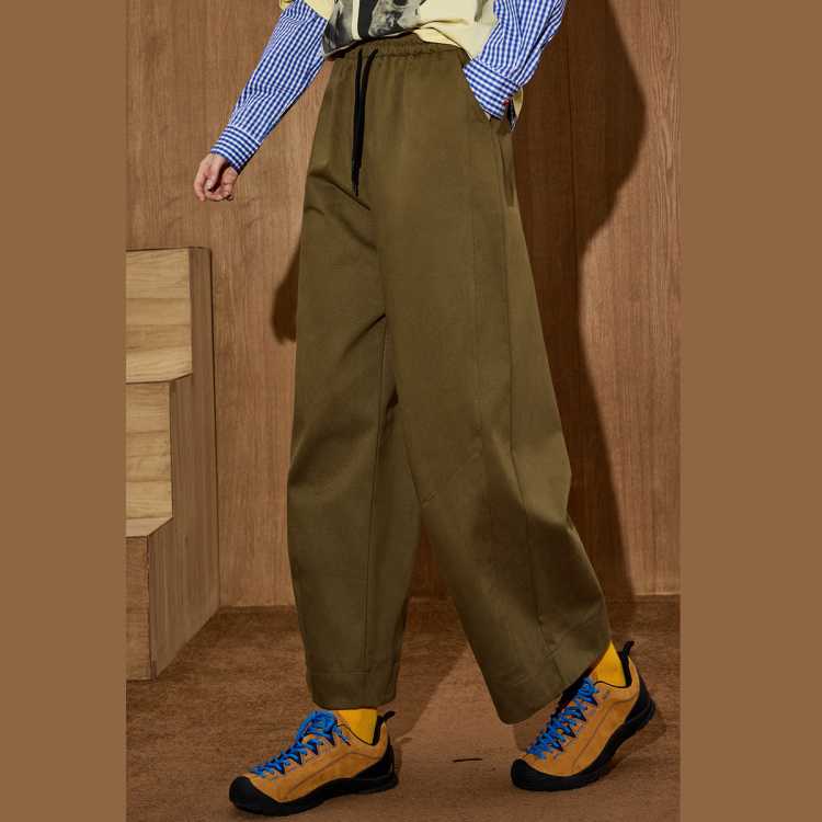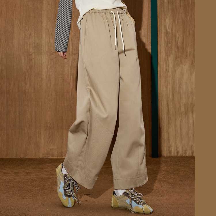 COOLHUT 日系復古松緊腰抽繩闊腿褶皺線條垂感春季女式休閑褲