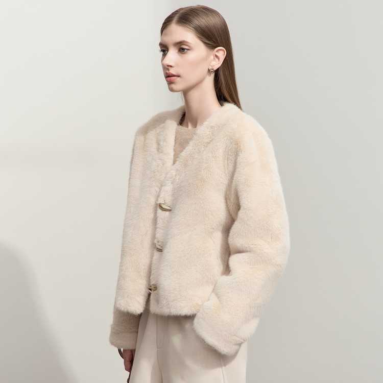 AMII 【輕奢風環保皮草】冬款V領仿水貂毛寬松溫暖毛絨外套