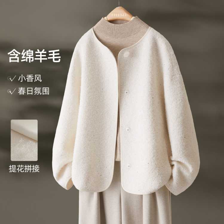 IHIMI海謐 【節日氛圍羊毛小香風外套】2026冬春提花拼接柔軟精致外套